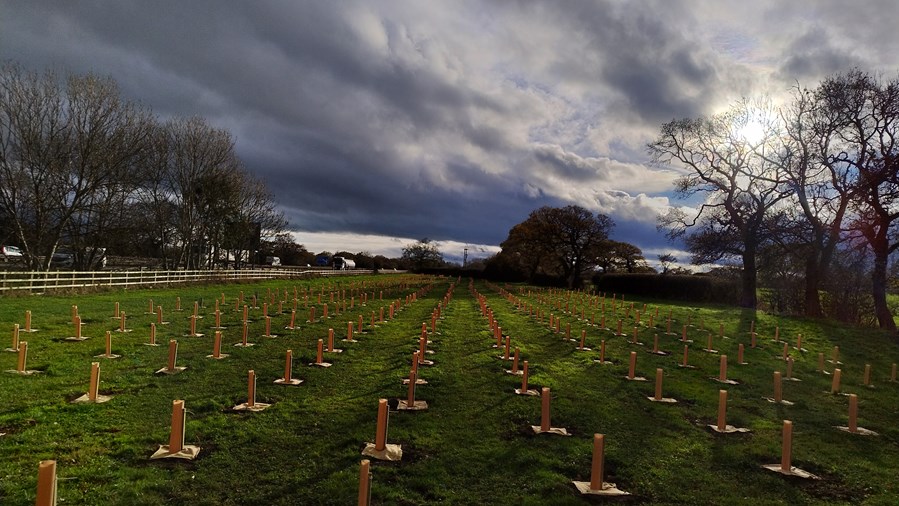 Flintshire Woodlands - the trading arm of Scottish Woodlands Ltd in Wales and western England - was involved in ground preparation and planting. The ground prep involved creating 1600 inverted mounds per hectare to create a weed-free planting site.